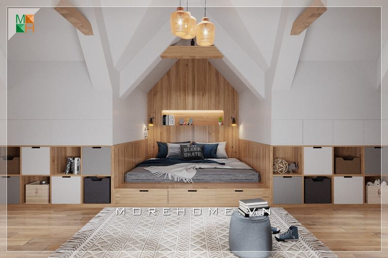 Lựa chọn mẫu giường ngủ chung cư gỗ công nghiệp nhẹ nhàng mà không kém phần hiện đại ở không gian phòng ngủ của con