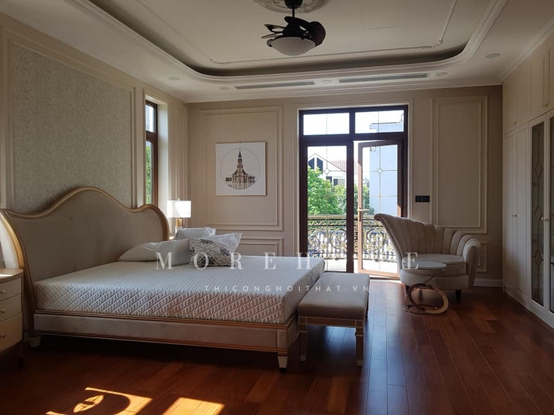 Thi công sofa văng không tựa cuối giường có thể ngồi nghỉ ngơi, thư giãn tạo cho không gian thêm vẻ đẹp sang trọng, tiện nghi.