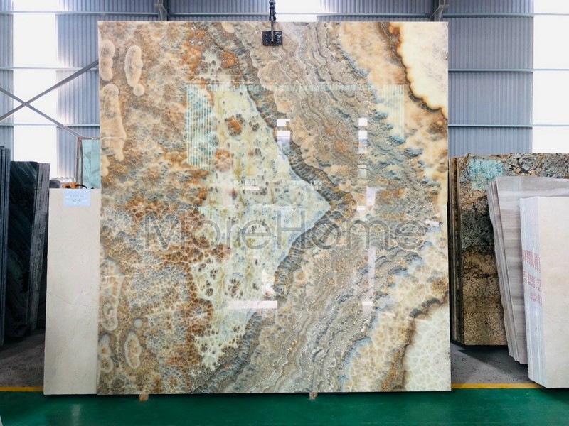 Bạn có thể dùng đá onyx để tạo thành những bức tranh đá sống động trên tường cùng với việc kết hợp các loại đèn trang trí như đèn chiếu rọi, đèn hắt… tạo nên sự hiện đại, trang trọng.