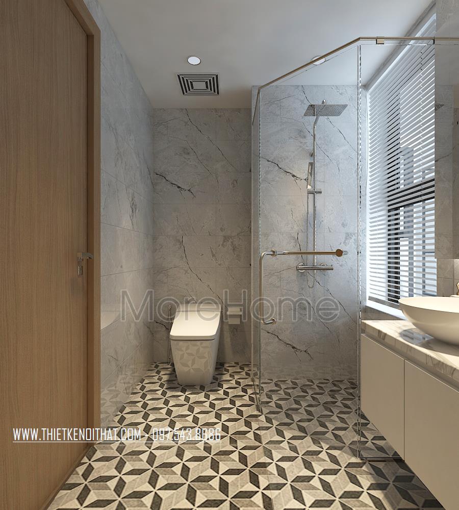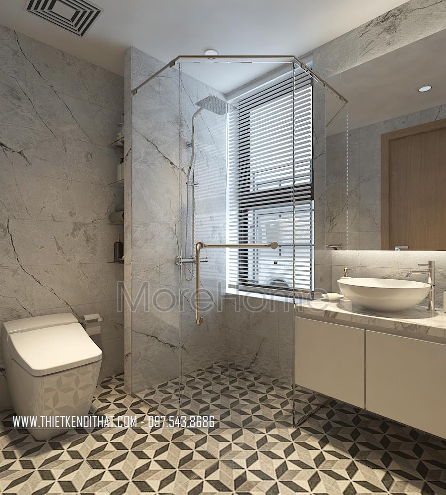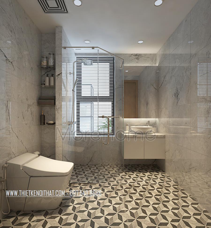 Đá ốp lát sàn, nội thất nhà tắm chung cư Sun Grand